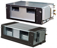Мощные канальные блоки производительностью от 7 до 28 кВт (девять типоразмеров) можно установить за подвесным потолком или в углублении потолка. Внешнее статическое давление до 250 Па, длина воздуховода до 14 метров.